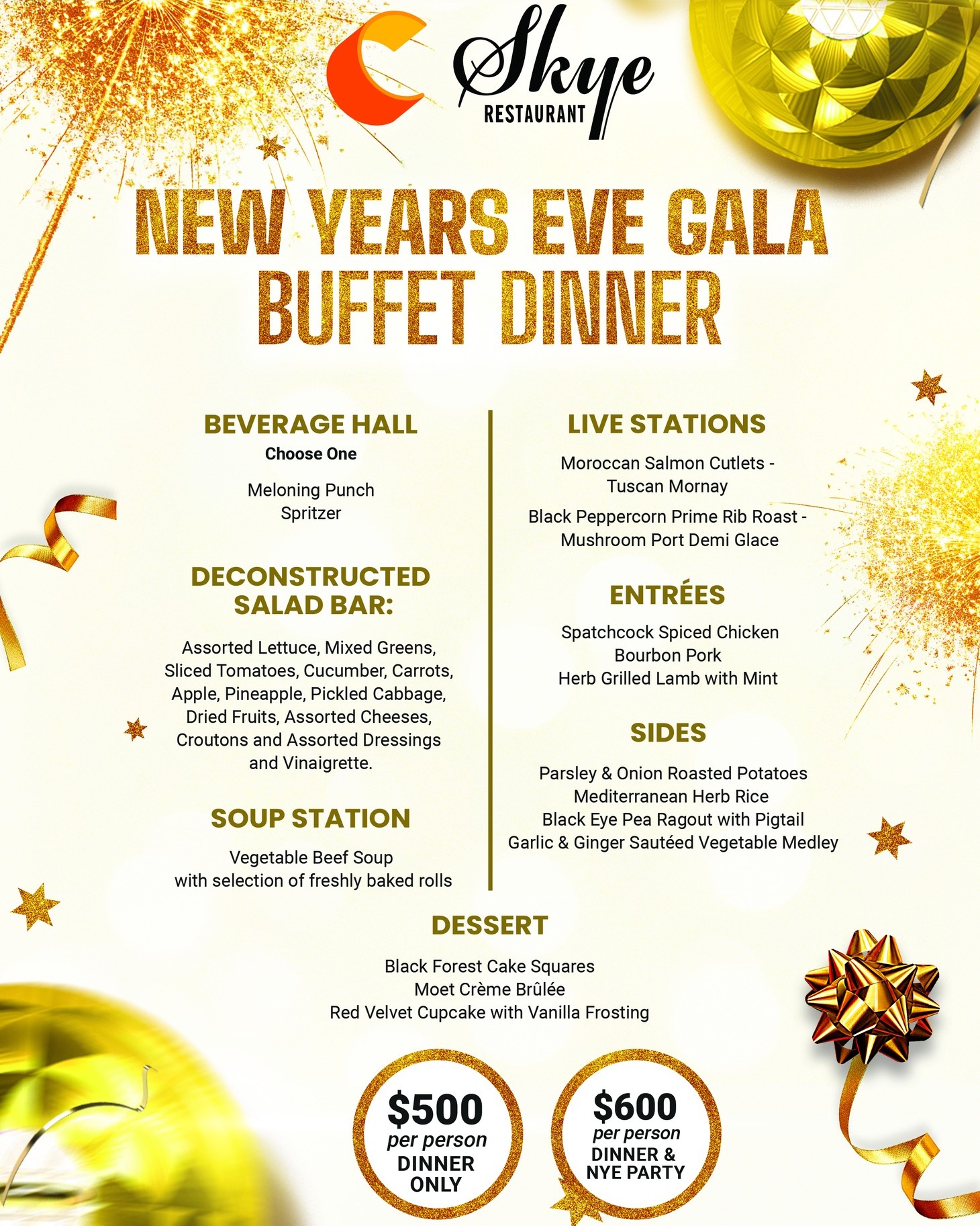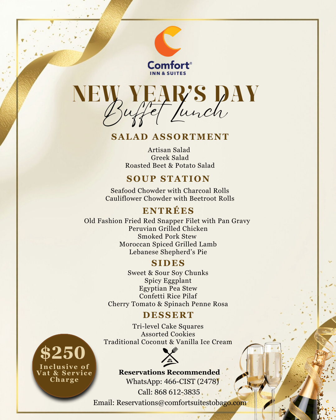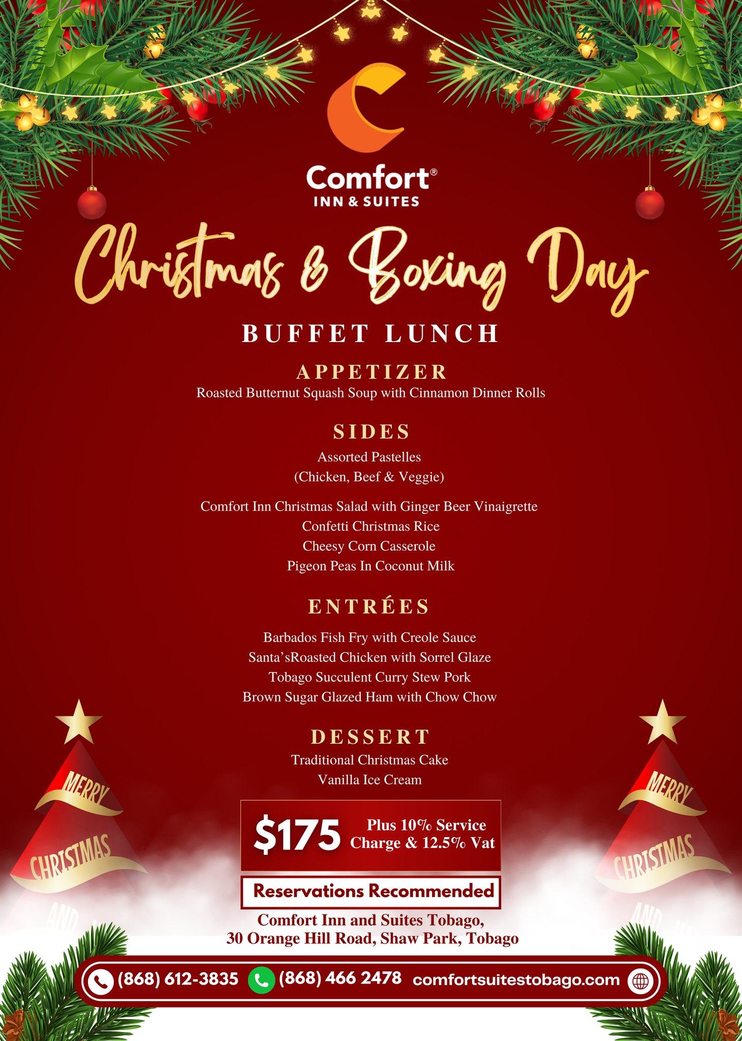 Menus are quoted in TT$ and subject to 10% Service Charge and 12.5% VAT.